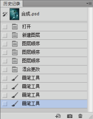(4)右键单击所要的状态(或快照),在弹出的快捷菜单中选择新文档,把历史状态中当前图片的某一历史状态拖到另一个图片的窗口,可改变目的图片的内容。按住【Alt】键单击任一历史状态(除了当前、最近的状态)可以复制该状态,被复制的状态变为当前(最近的)状态。按住【Alt】键拖动动作中的步骤可以将其复制到另一个动作中。