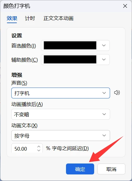 第10步:点击【确定】按钮,打字机动画效果就设置好了。