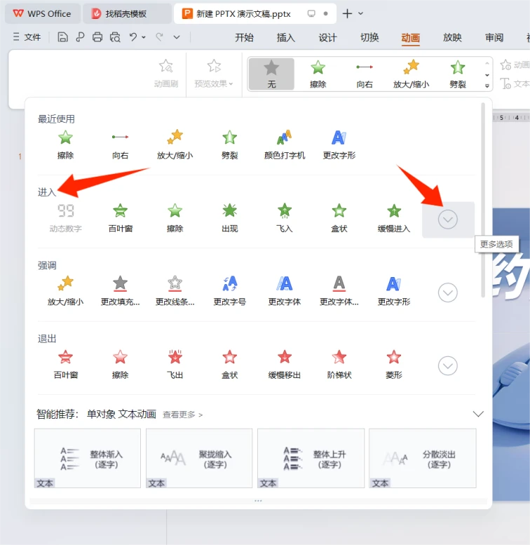 第2步:在下拉窗口中点击【进入】动画中的【更多选项】按钮。
