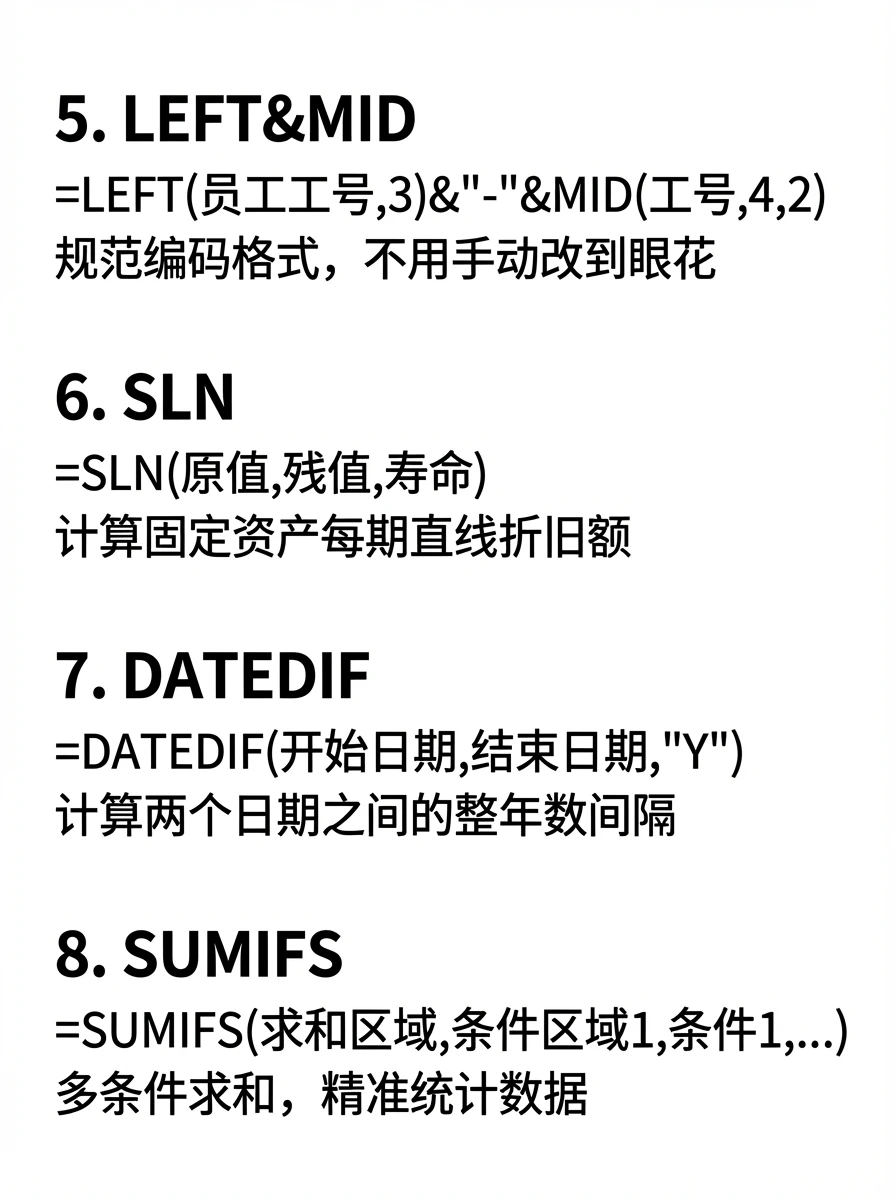 5. 部门编码自动生成:=LEFT(员工工号,3)&”-“&MID(工号,4,2) 规范编码格式,不用手动改到眼酸!