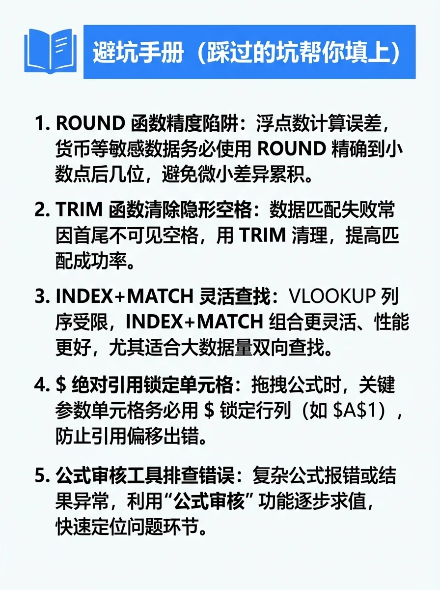 1. 💰 金额必套ROUND:所有和钱相关的公式,一定要加ROUND(…,2),彻底告别尾差烦恼!