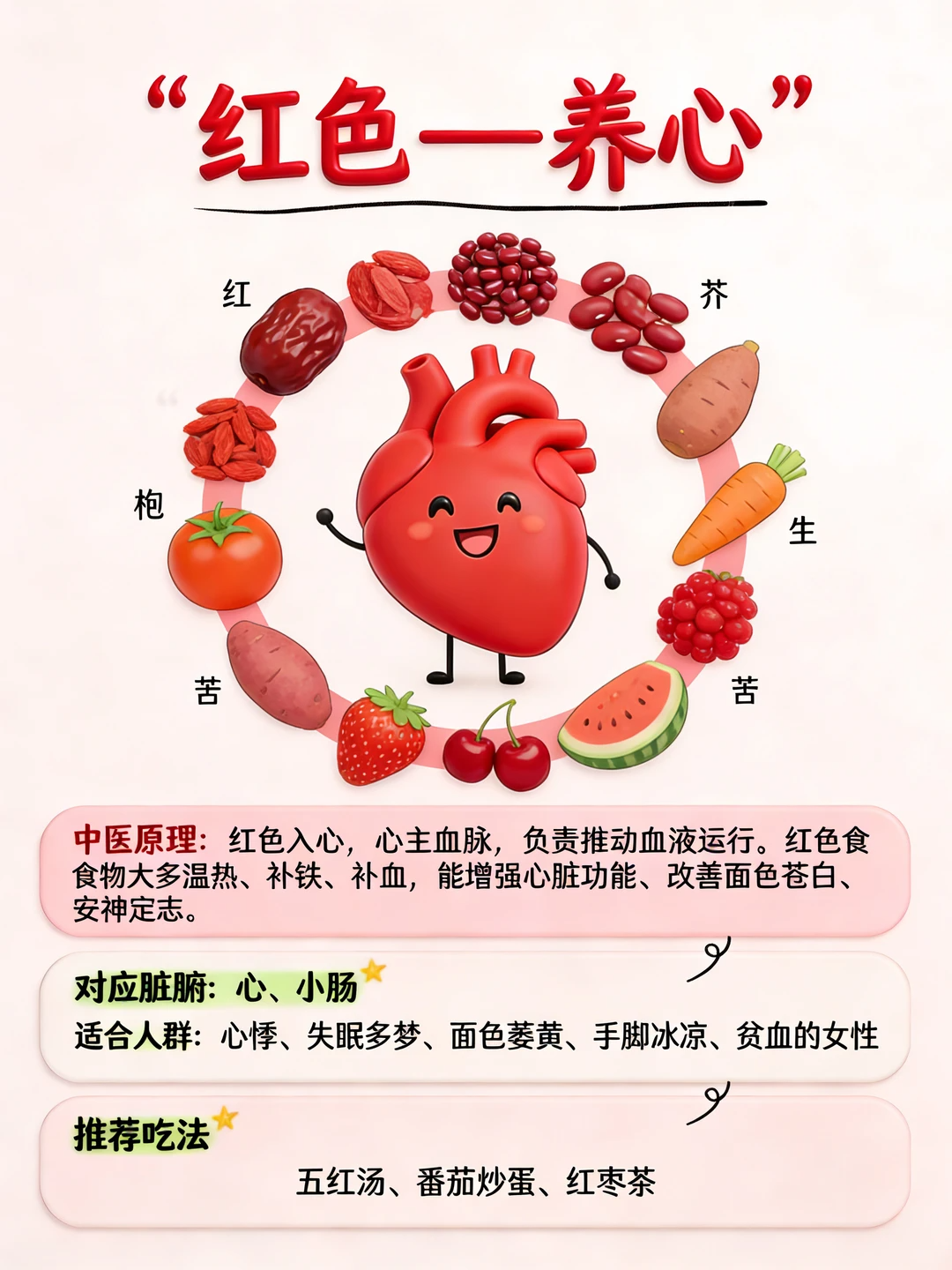 ✅ 对应食物:红枣🍎、番茄、红豆、枸杞、樱桃