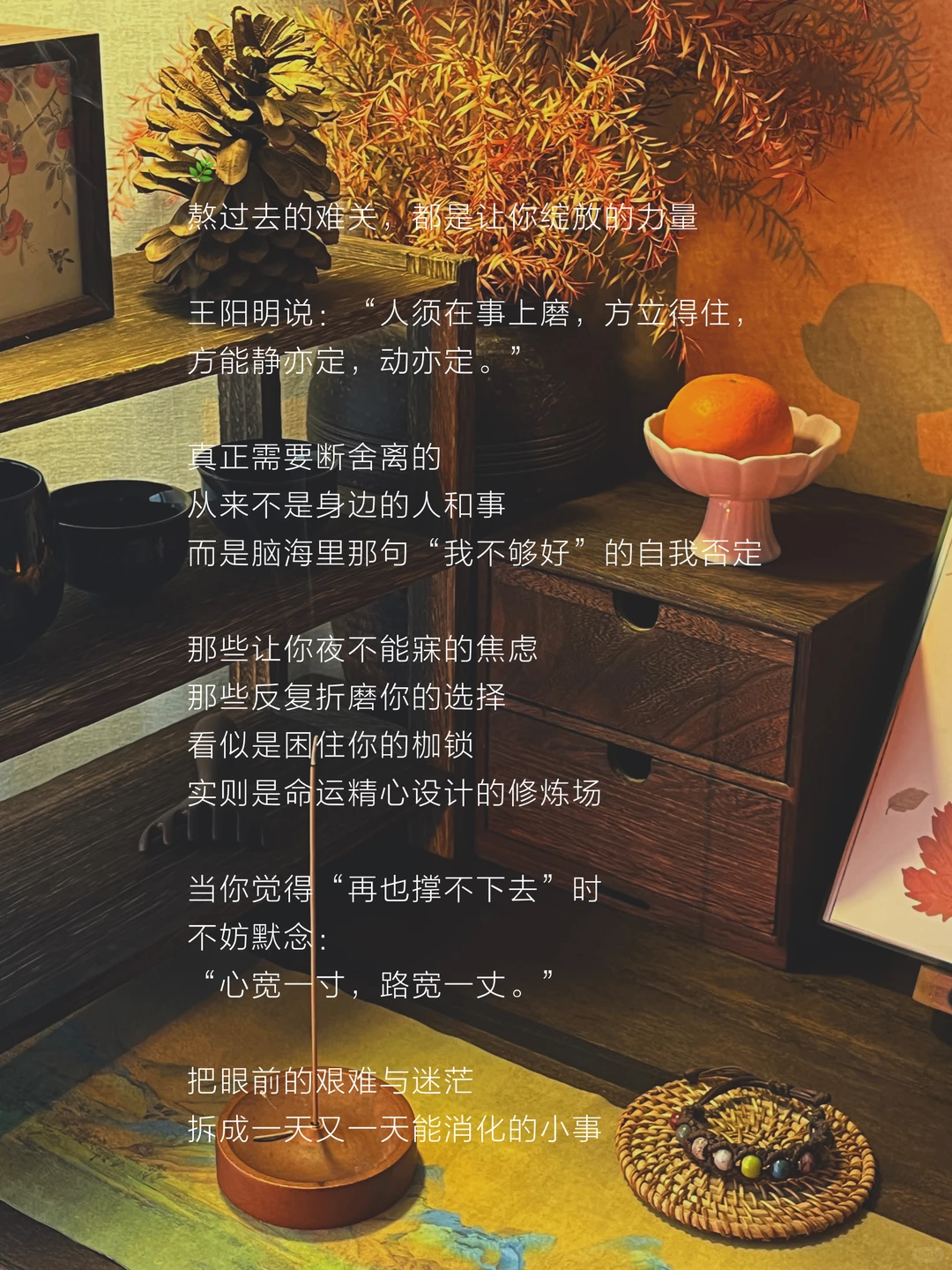 那些让你夜不能寐的焦虑 那些反复折磨你的选择 看似是困住你的枷锁 实则是命运精心设计的修炼场 当你觉得“再也撑不下去”时 不妨默念:“心宽一寸,路宽一丈。”