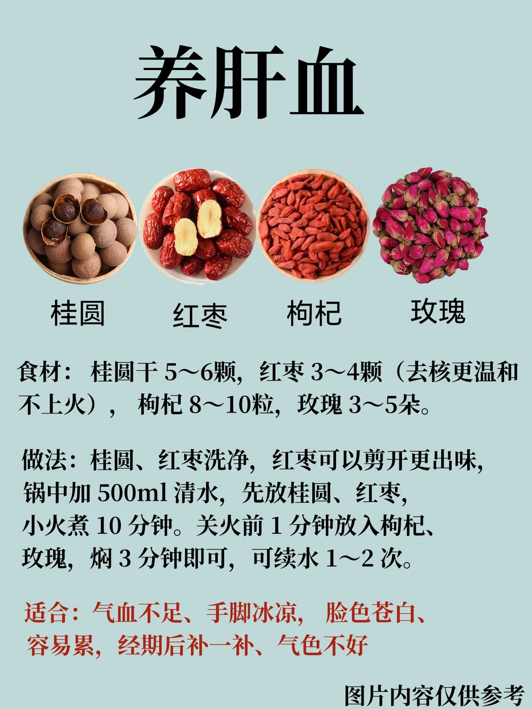 🍵三阶·补养肝血 配料:桂圆肉、红枣、枸杞、玫瑰