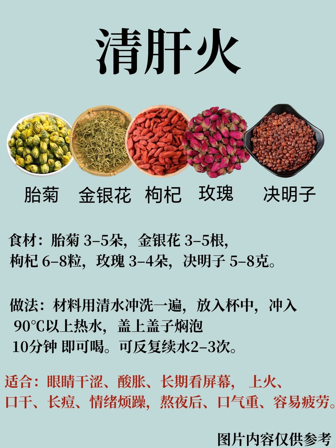 🍵二阶·清泻肝火 配料:胎菊、金银花、枸杞、玫瑰、决明子