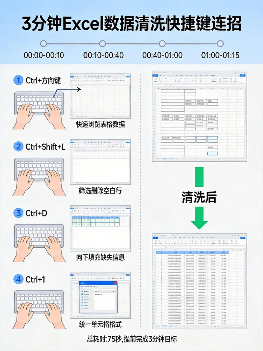 从最常用开始,如Ctrl+C/V 坚持3天,手自然记住。效率提升后,准时下班不是梦。