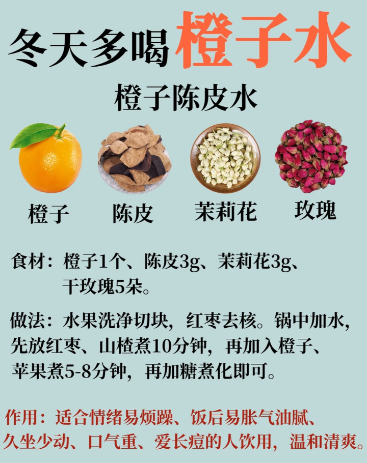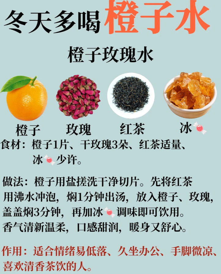 2️⃣ 橙子陈皮茉莉玫瑰水 · 冬天体寒怕冷,抗yang化适宜