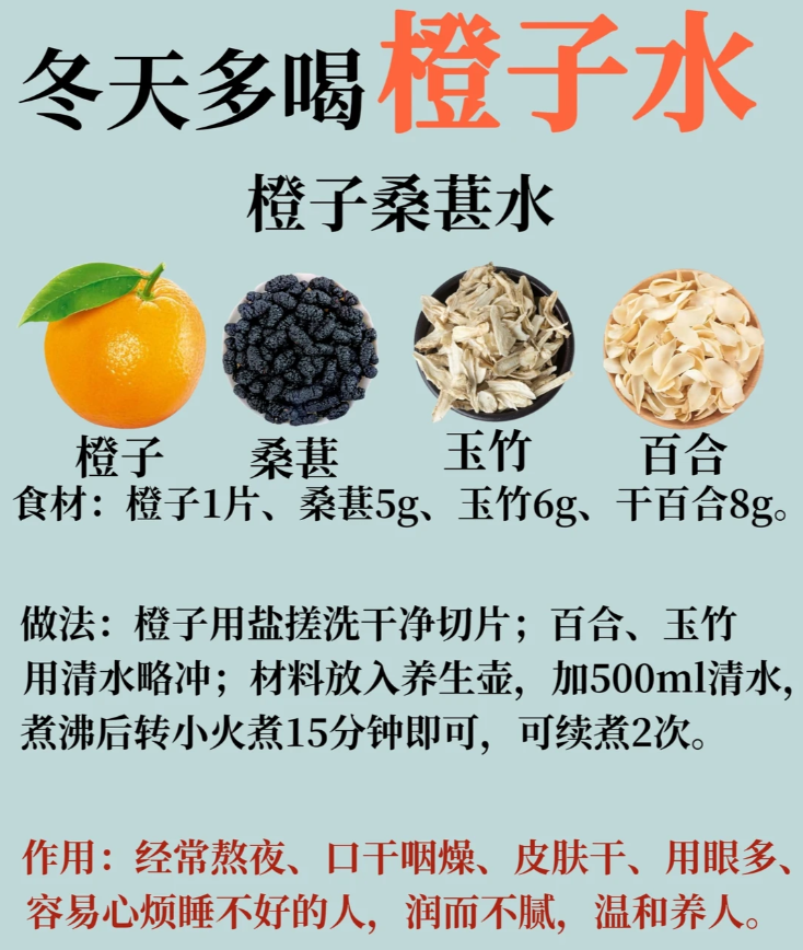 3️⃣ 橙子桑葚玉竹百合水 · 气色不佳,肺不好适宜