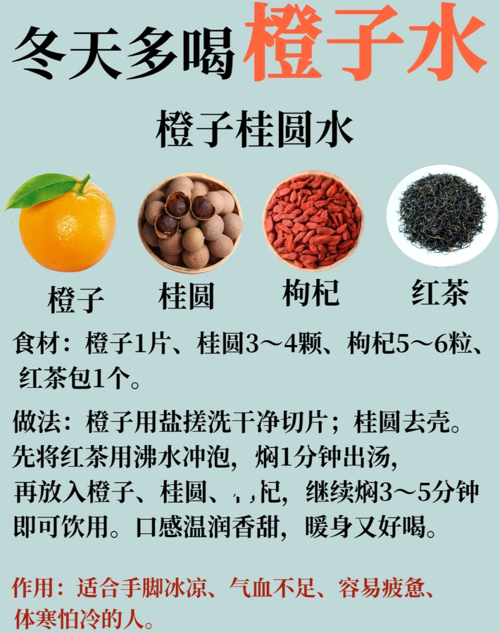 5️⃣ 橙子桂圆枸杞红茶 · 冬天手脚冰凉,畏寒怕冷适宜