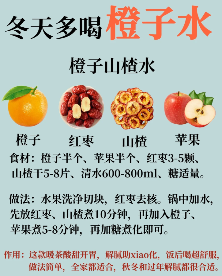 1️⃣ 橙子红枣山楂苹果水 · 经常熬夜,皮肤不好适宜