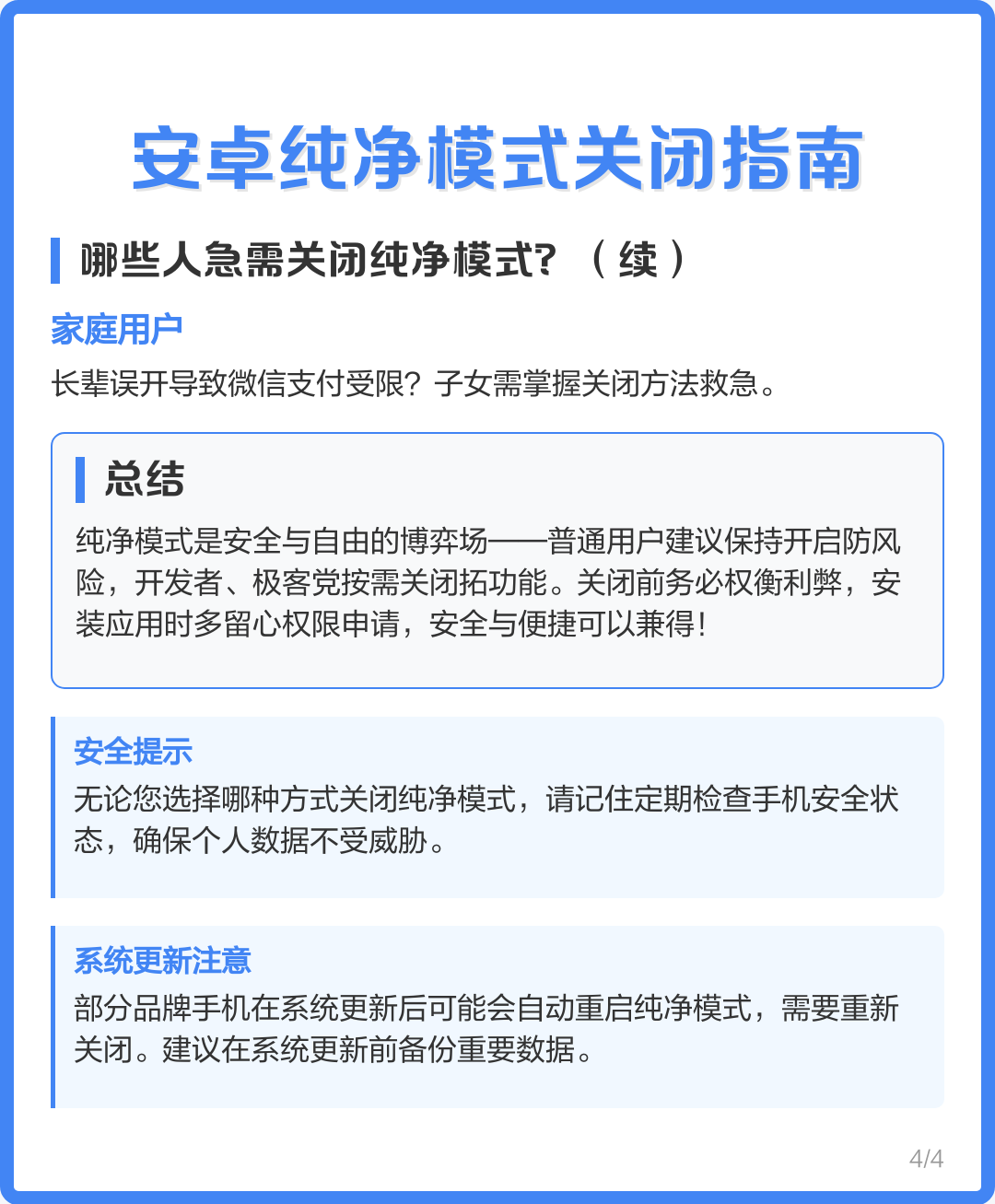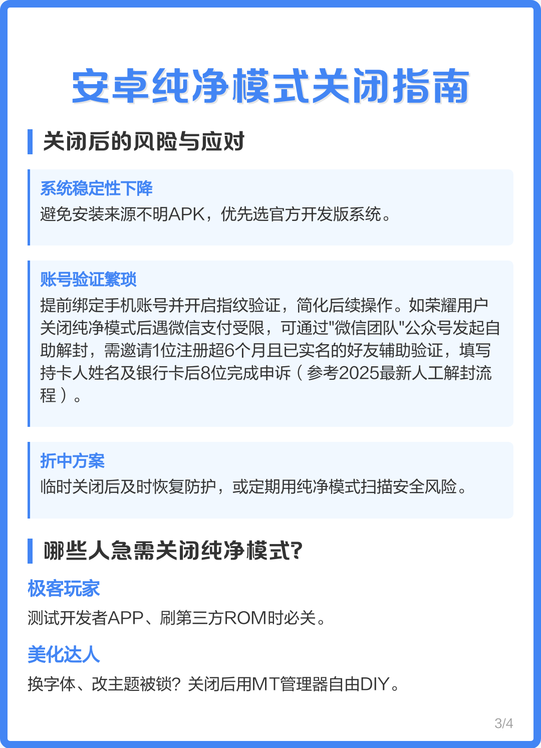 纯净模式是手机的重要安全防线,关闭后建议采取以下措施,确保设备安全:
