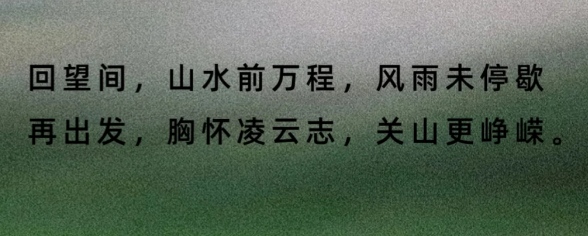 /回望间,山水千万程,风雨未停歇,再出发,胸怀凌云志,关上更峥嵘。