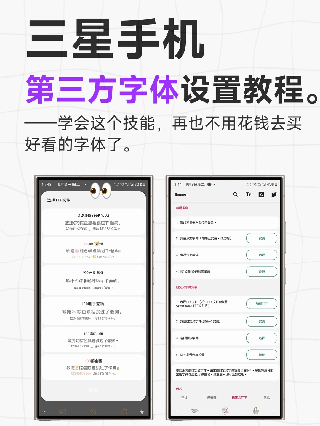 三星手机如何安装第三方字体,一篇保姆级教程带你手拿把掐‼️