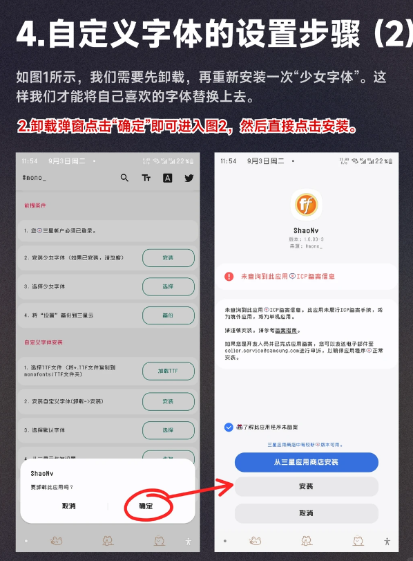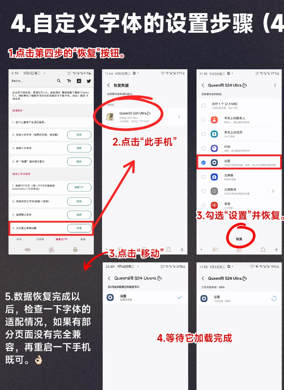 4️⃣自定义字体的设置步骤(4个步骤详细拆分教程) ——具体步骤见图5-6-7-8
