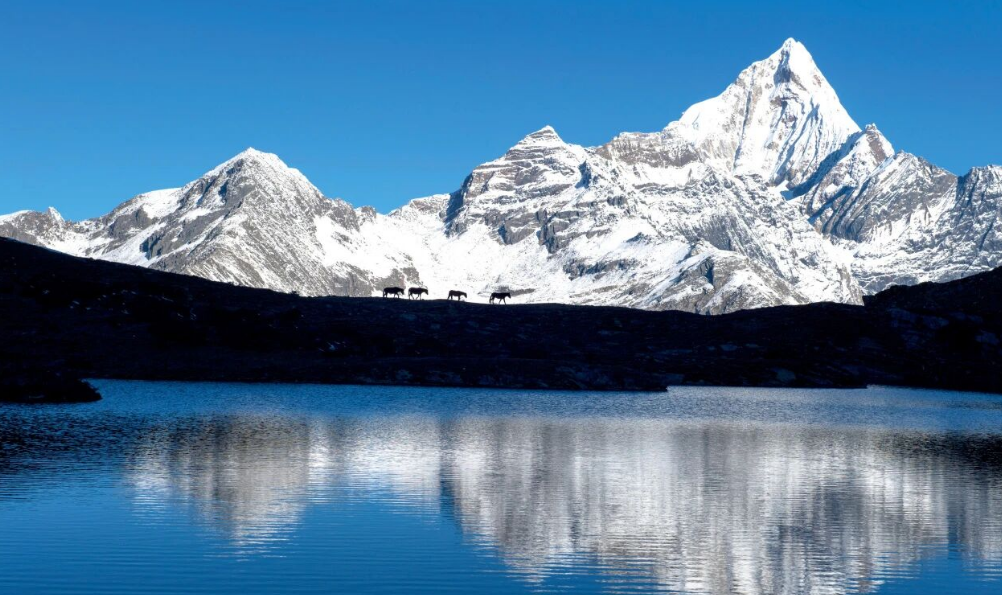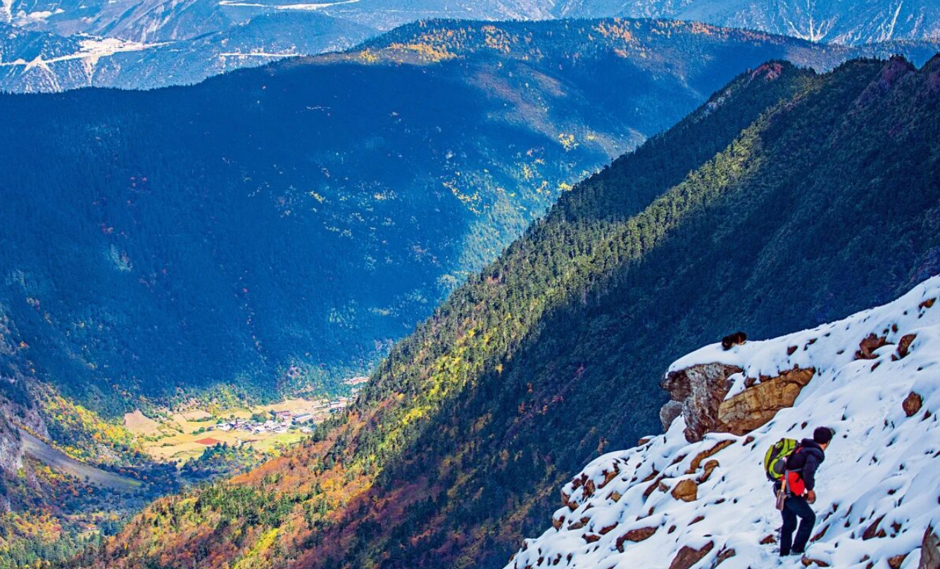 从尼色拉古垭口东侧俯瞰U型山谷中的雨崩村
