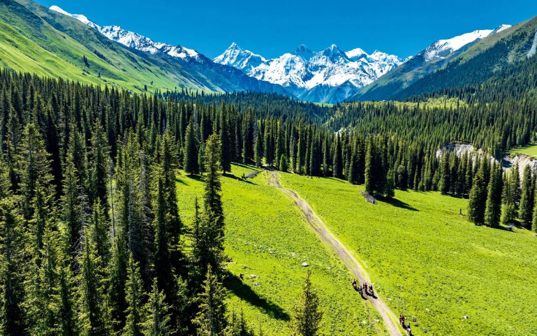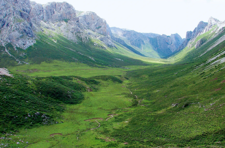 并汇聚成涓涓细流在宽阔平坦的U形谷中蜿蜒流淌