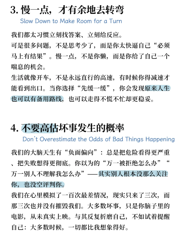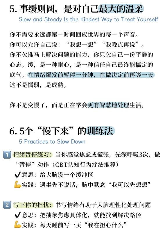 ▫️是告诉你:你并不需要总是急着回应、急着解决、急着证明。有时候,问题并不是要立刻“解决掉”,而是需要我们停下来,等一等,事情就自然过去了。