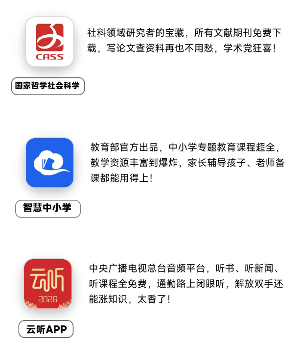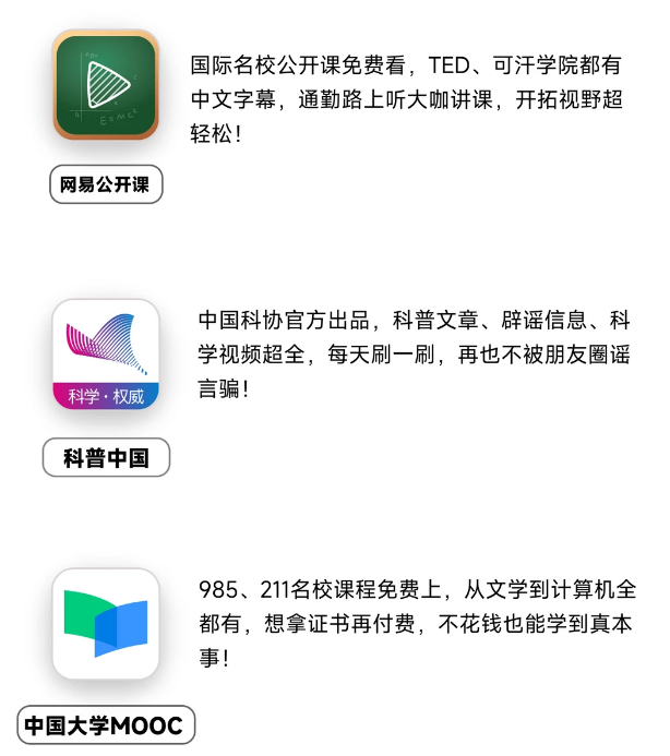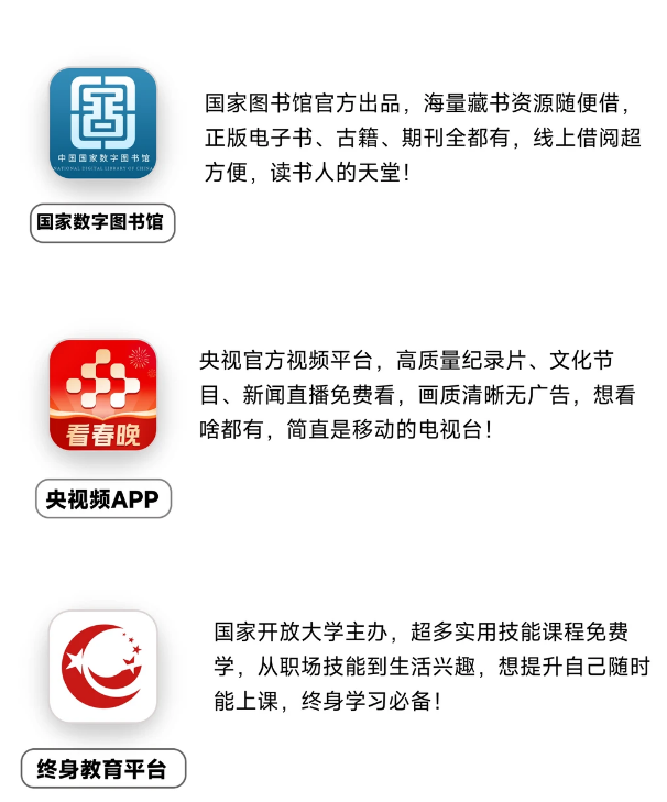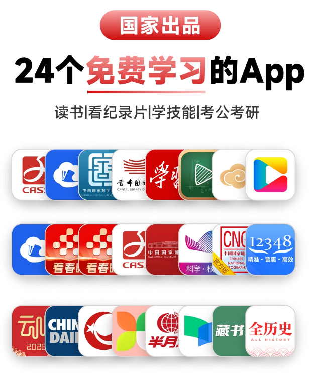 是不是总觉得想学点东西但又不舍得花钱?24个国家级免费学习APP!全都是官方出品,资源硬核到炸裂,一分钱不用花,谁用谁香!从读书、看纪录片、学技能到考公考研,全给你包圆了!偷偷变强,回头惊艳所有人!👇
