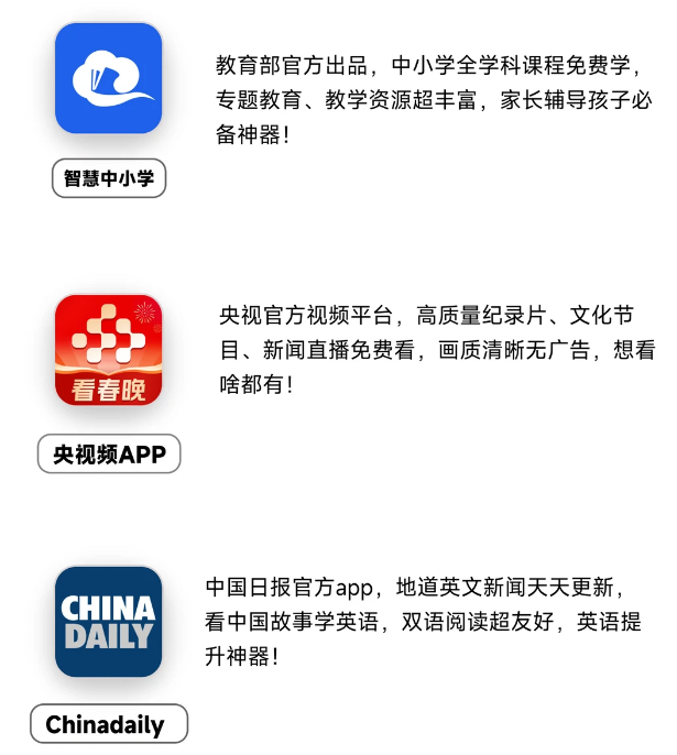 5️⃣ 智慧中小学:教育部出品,中小学课程资源超全,家长辅导神器。