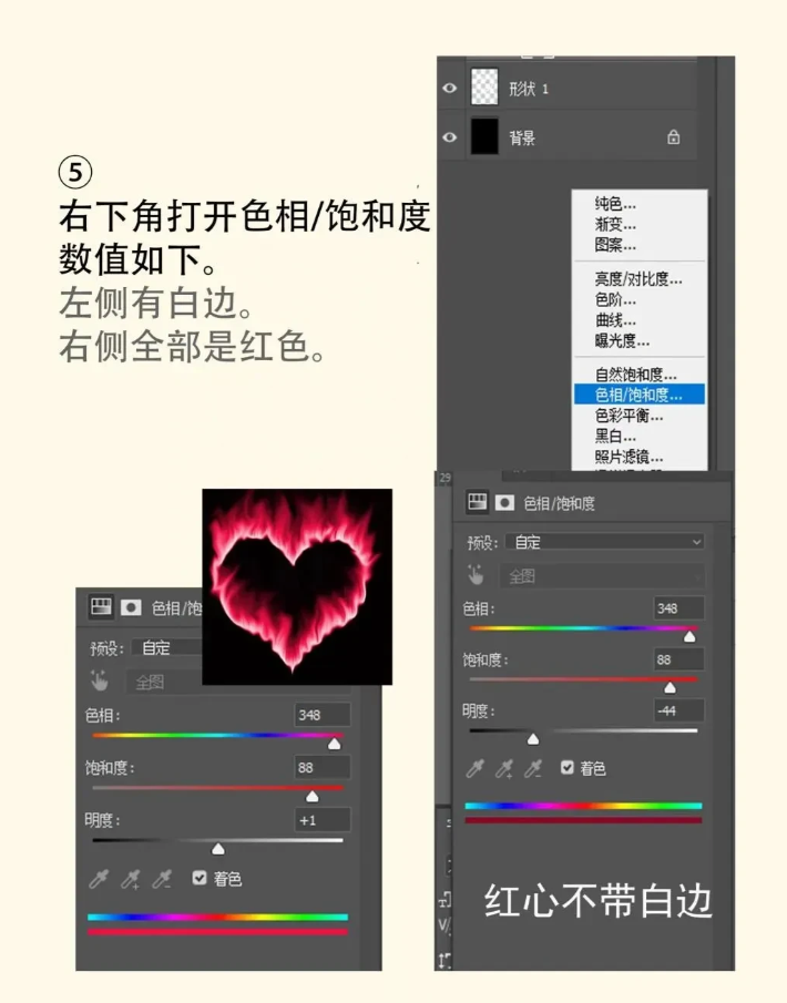右下角打开色相/饱和度 根据图示调整数值 打造逼真火焰色彩