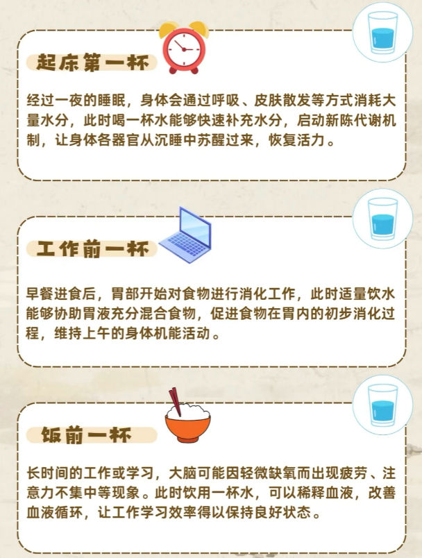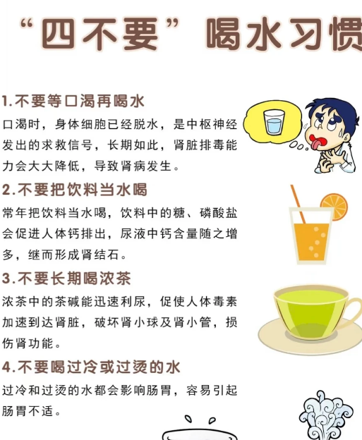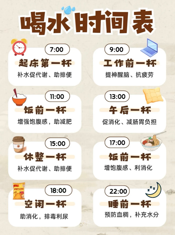 别等渴了才想起喝水,养成定时喝水好习惯。