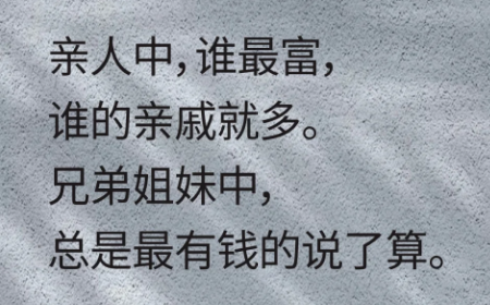 1、亲人中,谁最富,谁的亲戚就多。兄弟姐妹中,总是最有钱的说了算。