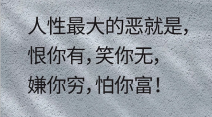 8、人性最大的恶就是,恨你有,笑你无,嫌你穷,怕你富!