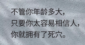 10、不管你年龄多大,只要你太容易相信人,你就拥有了死穴。