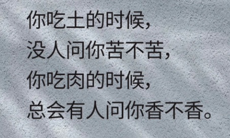 7、你吃土的时候,没人问你苦不苦,你吃肉的时候,总会有人问你香不香。
