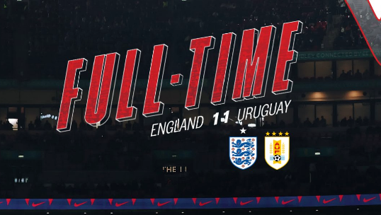 北京时间3月28日03:45,国际足球友谊赛,英格兰在主场温布利球场迎战乌拉圭。上半场,皮克雷斯、马杜埃凯伤退。半场结束,双方0-0战平。易边再战,勒温失良机,本·怀特破门+送点,巴尔韦德补时点射绝平。最终英格兰1-1乌拉圭。