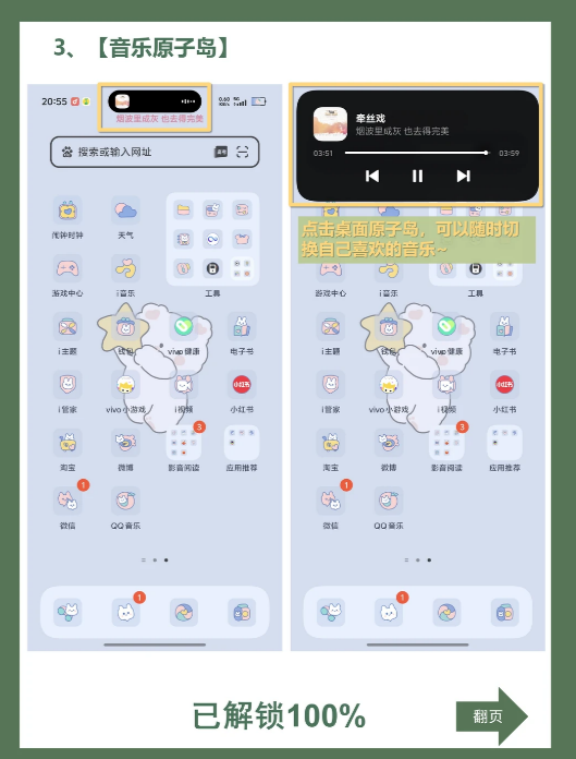 3️⃣设置音乐原子岛,可以随时切换自己喜欢听的音乐。