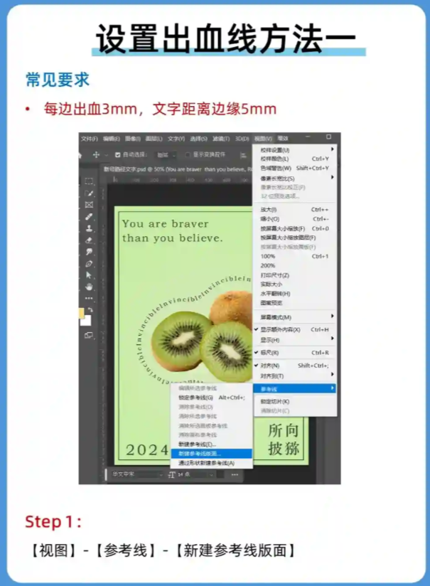 📚PS制图到打印,每一个细节都至关重要。今天,分享的是一个容易被忽视但对打印质量影响巨大的环节——出血线设置。