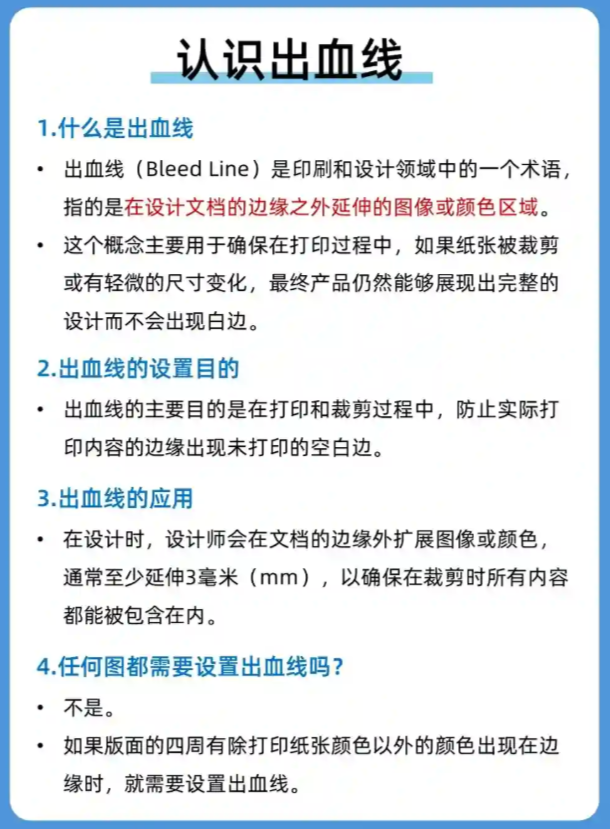 – 🛠️出血线是设计文档边缘外的额外区域,用于确保打印时边缘内容不会被裁剪掉。