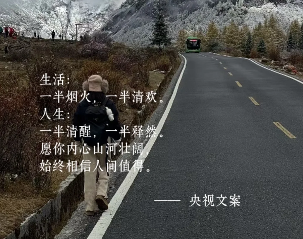 06 生活:一半烟火,一半清欢。 人生:一半清醒,一半释然。 愿你内心山河壮阔, 始终相信人间值得。