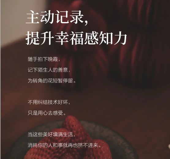 千万别低估为小事雀跃的能力,真的很养人。 随手拍下晚霞, 记下陌生人的善意, 为转角的花短暂停留。 不用纠结技术好坏,只是用心去感受。 当这些美好填满生活, 消耗你的人和事就再也挤不进来。