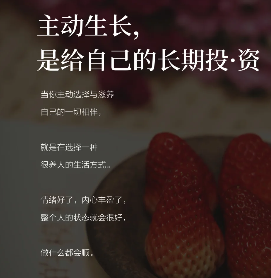 当你主动选择与滋养自己的一切相伴, 就是在选择一种很养人的生活方式。 情绪好了,内心丰盈了, 整个人的状态就会很好,做什么都会顺。