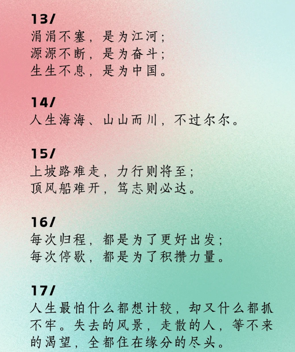 16/ 每次归程,都是为了更好出发; 每次停歇,都是为了积攒力量。