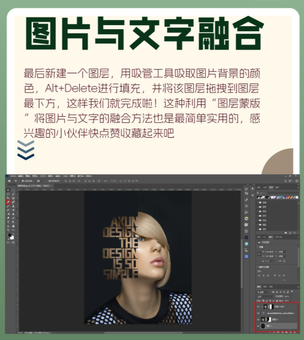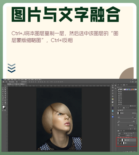 这种利用“图层蒙版”将图片与文字的融合方法也是最简单实用的