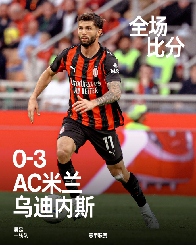 北京时间4月12日00:00,意甲联赛第32轮,AC米兰在主场圣西罗球场迎战乌迪内斯。上半场,阿塔小角度爆射造成巴尔泰萨吉乌龙,戴维斯射中门框,埃克勒卡姆头球扩大比分。半场结束,米兰0-2乌迪内斯。易边再战,萨勒马科尔斯远射被扑后也击中横梁,阿塔锁定胜局。最终AC米兰0-3不敌乌迪内斯。本场比赛过后,米兰先赛的情况下积63分依旧排在第三,乌迪内斯积43分暂列第十。